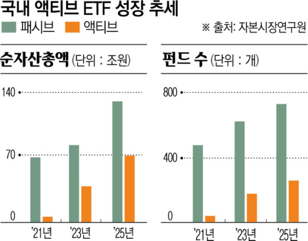반면 자본력과 규모의 경제에서 밀리는 중소형 자산운용사 입장에서 이 같은 수수료 전쟁은 승산이 없는 게임이다. 박리다매 구조인 패시브 ETF로는 의미 있는 수익을 내기 어렵기 때문이다. 이 틈에서 중소형사들이 생존을 위해 찾아낸 돌파구로 액티브 ETF가 주목된다.