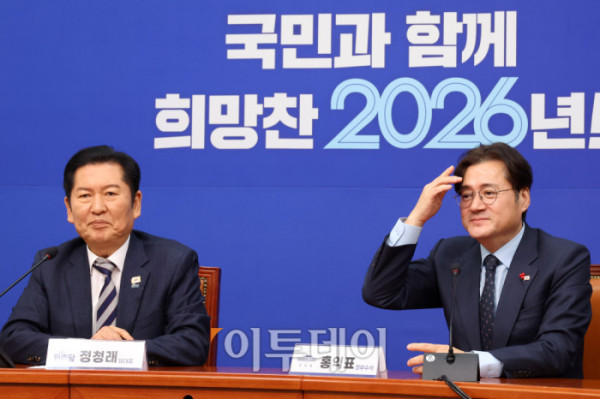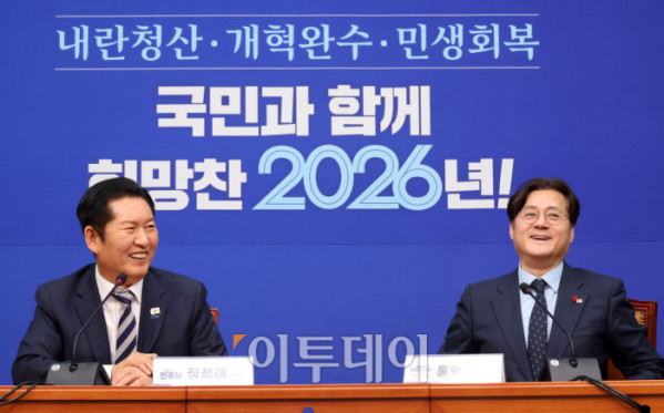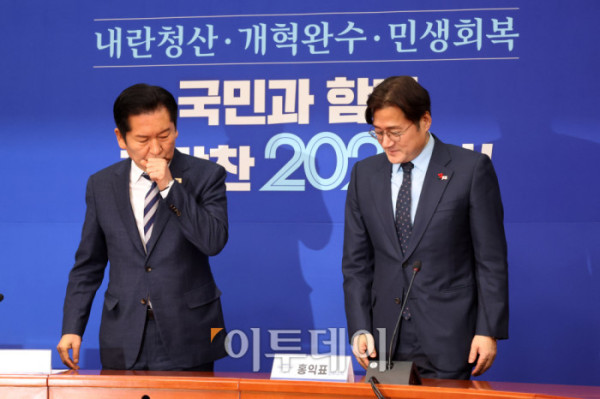 홍익표 청와대 정무수석이 21일 서울 여의도 국회에서 정청래 더불어민주당 대표와 한병도 더불어민주당 원내대표를 각각 예방하고 있다. 고이란 기자 photoeran@