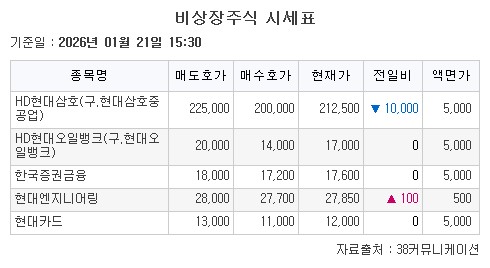 현대중공업 계열 조선업체 HD현대삼호(구.현대삼호중공업)는 호가 21만2500원(-4.49%)으로 하락했다.
