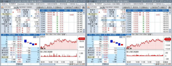 3월만기 3년 국채선물은 19틱 오른 104.95를, 10년 국채선물은 54틱 상승한 110.92를 기록했다. 30년 국채선물도 6틱 상승해 127.56에 거래를 마쳤다.