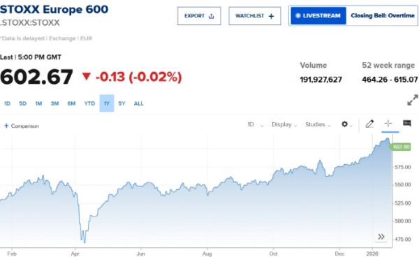 미국 경제매체 CNBC방송에 따르면 이날 범유럽 주가지수인 스톡스유럽600 지수는 전 거래일 대비 0.13포인트(0.02%) 밀린 602.67에 장을 마감했다. 독일 프랑크푸르트증시 DAX30지수는 142.14포인트(0.58%) 내린 2만4560.98에, 영국 런던증시 FTSE100지수는 11.31 포인트(0.11%) 오른 1만138.09에, 프랑스 파리증시 CAC40지수는 6.59포인트(0.08%) 상승한 8069.17에 각각 거래를 끝냈다.