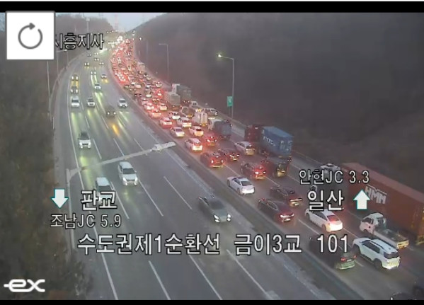 수도권제1순환도로 일산방향에서 사고가 잇따라 발생해 출근길 정체가 이어지고 있다.