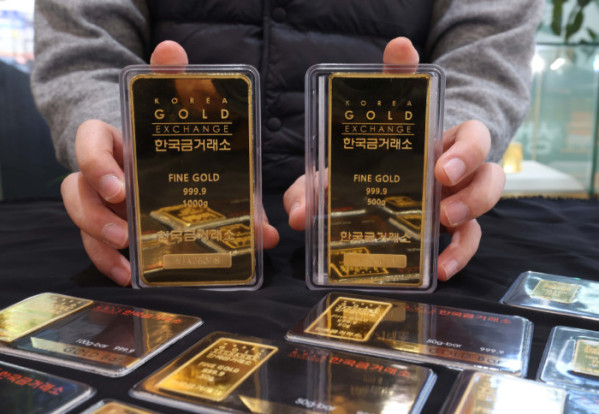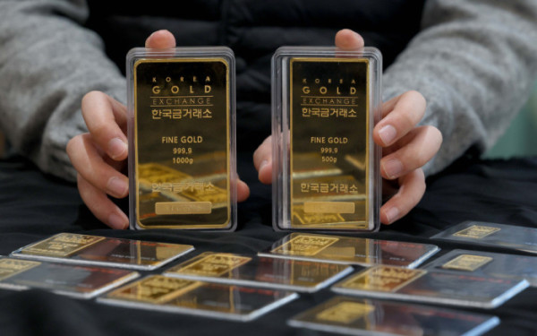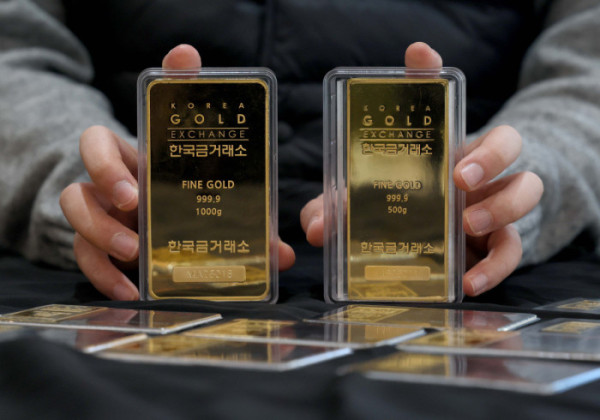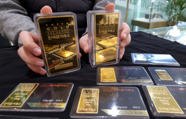 ▲금값이 끝을 모르는 듯 상승하며 금 한돈 가격이 100만 원을 넘어선 가운데 22일 서울 종로구 한국금거래소에서 관계자가 골드바를 들어보이고 있다. 한국금거래소에 따르면 21일 기준 순금 1돈(3.75g) 소비자 매입가격은 100만 9000원으로 100만원 선을 처음으로 돌파했다. 이란 사태와 그린란드 분쟁 같은 국제 정세 불안이 최근 겹치면서, 안전자산을 찾는 수요가 점점 더 강해지고 있다. 신태현 기자 holjjak@