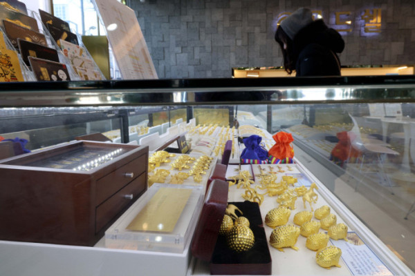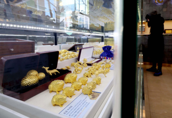 ▲금값이 끝을 모르는 듯 상승하며 금 한돈 가격이 100만 원을 넘어선 가운데 22일 서울 종로구 한국금거래소에 금세공품이 전시돼 있다. 한국금거래소에 따르면 21일 기준 순금 1돈(3.75g) 소비자 매입가격은 100만 9000원으로 100만원 선을 처음으로 돌파했다. 이란 사태와 그린란드 분쟁 같은 국제 정세 불안이 최근 겹치면서, 안전자산을 찾는 수요가 점점 더 강해지고 있다. 신태현 기자 holjjak@