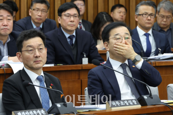 ▲김윤덕(오른쪽) 국토교통부 장관과 윤창렬 국무조정실장이 22일 서울 여의도 국회에서 열린 12.29 여객기 참사 진상규명을 위한 국정조사특별위원회 청문회에 참석하고 있다. 고이란 기자 photoeran@