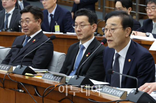 ▲김윤덕 국토교통부 장관이 22일 서울 여의도 국회에서 열린 12.29 여객기 참사 진상규명을 위한 국정조사특별위원회 청문회에서 의원 질의에 답하고 있다. 고이란 기자 photoeran@