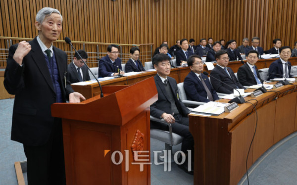 ▲22일 서울 여의도 국회에서 열린 12.29 여객기 참사 진상규명을 위한 국정조사특별위원회 청문회에서 이석암 전 서울지방항공청장(2004년 재직)이 의원 질의에 답하고 있다. 고이란 기자 photoeran@