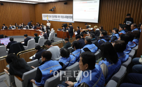 ▲22일 서울 여의도 국회에서 열린 12.29 여객기 참사 진상규명을 위한 국정조사특별위원회 청문회에서 유가족들이 자리를 지키고 있다. 고이란 기자 photoeran@