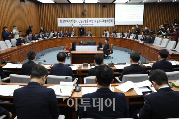 ▲22일 서울 여의도 국회에서 12.29 여객기 참사 진상규명을 위한 국정조사특별위원회 청문회가 열리고 있다. 고이란 기자 photoeran@