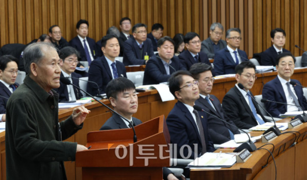 ▲22일 서울 여의도 국회에서 열린 12.29 여객기 참사 진상규명을 위한 국정조사특별위원회 청문회에서 장종식 전 서울지방항공청장(2007년 재직)이 의원 질의에 답하고 있다. 고이란 기자 photoeran@