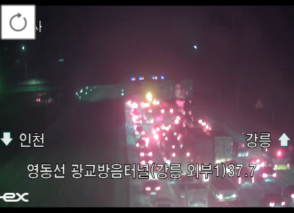 ▲[속보] 영동고속도로 광교방음터널서 화물차 화재, 동수원톨게이트 신갈방향 전면 차단 (출처=로드플러스 캡처)