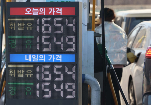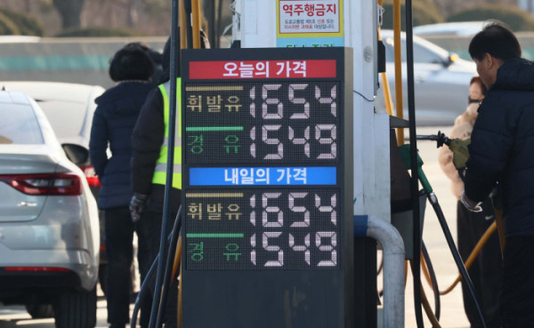 국내 주유소 휘발유와 경유 가격이 7주 연속 하락세를 이어갔다. 휘발유 평균 판매가격은 11주 만에 1700원 아래로 떨어졌다. 25일 서울 서초구 만남의 광장 주유소에서 시민들이 주유를 하고 있다. 한국석유공사 유가정보시스템 오피넷에 따르면, 1월 셋째 주 전국 주유소 휘발유 평균 판매가격은 전주보다 리터당 10.0원 내린 1696.2원으로 집계됐다. 휘발유 가격이 1700원 아래로 내려간 것은 지난해 11월 첫째 주(1685.6원) 이후 11주 만이다. 경유 평균 판매가격은 전주 대비 11.8원 내린 1589.9원을 기록했다.