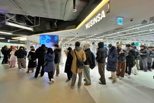 ▲23일 오픈한 롯데백화점 잠실점 2층 '무신사 스토어' 매장 앞에서 고객들이 입장하기 위해 줄을 서고 있다. (사진제공=롯데백화점)