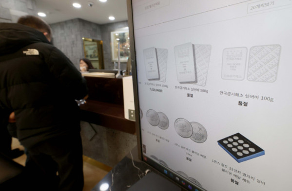 ▲대표적인 안전자산으로 꼽히는 금과 은 가격이 지정학적 긴장과 달러화에 대한 헤지(위험분산) 수요가 증가하면서 사상 최고치 기록을 경신한 가운데 26일 서울 종로구 한국금거래소에 은시세가 표시되고 있다. 블룸버그에 따르면 국제 금 현물 가격은 이날(한국 시간) 오전 8시 사상 처음으로 온스당 5000달러를 돌파했다. 은 현물 가격은 앞서 24일 오전 처음으로 온스당 100달러를 넘어섰다. 신태현 기자 holjjak@