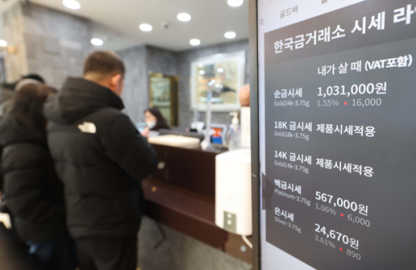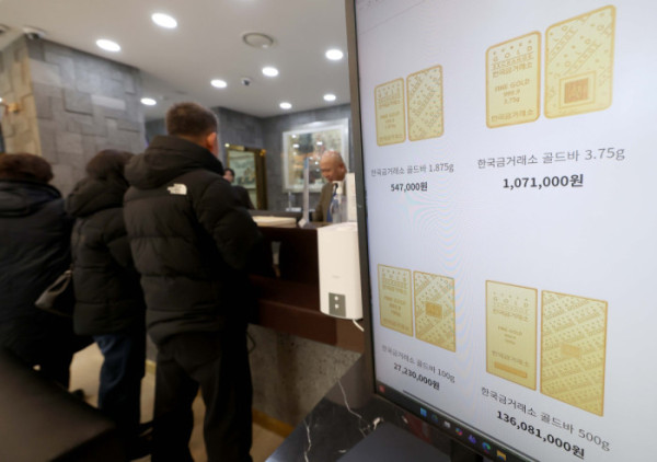 ▲대표적인 안전자산으로 꼽히는 금과 은 가격이 지정학적 긴장과 달러화에 대한 헤지(위험분산) 수요가 증가하면서 사상 최고치 기록을 경신한 가운데 26일 서울 종로구 한국금거래소에 골드바 가격이 표시되고 있다. 블룸버그에 따르면 국제 금 현물 가격은 이날(한국 시간) 오전 8시 사상 처음으로 온스당 5000달러를 돌파했다. 은 현물 가격은 앞서 24일 오전 처음으로 온스당 100달러를 넘어섰다. 신태현 기자 holjjak@