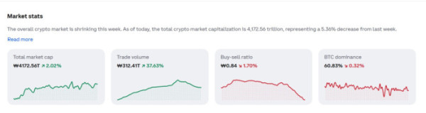 코인베이스에 따르면 한국시간 27일 오전 7시 20분 기준 비트코인은 1억2699만 원 선에서 거래되며 전일 대비 1.9%가량 상승했다. 이더리움은 421만 원대에서 4% 넘게 오르며 주요 암호화폐 가운데 상승 폭이 두드러졌다.