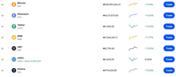 ▲코인 상승장…이더리움 4%·솔라나 5% 급등, 비트코인·리플·BNB도 동반 상승…상승장에 코인 가격·시세 관심 (출처=코인베이스 캡처)