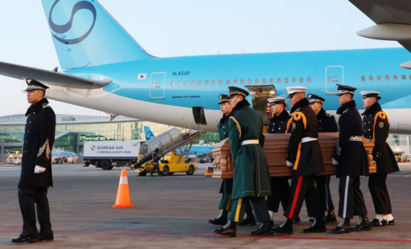 정치권에 따르면 이 전 총리 시신을 싣고 베트남 호찌민 공항을 출발한 대한항공 항공기는 4시간 30분 만인 이날 오전 6시 53분께 인천국제공항에 도착했다.