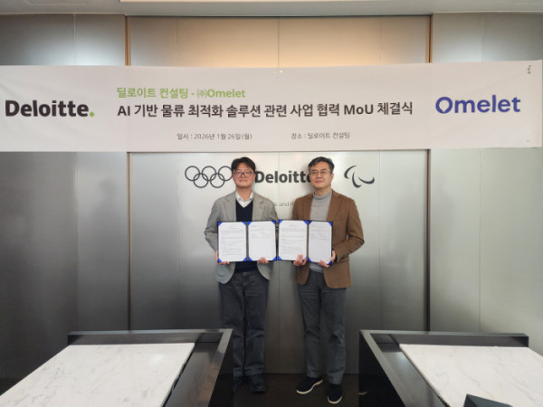 딜로이트 컨설팅 코리아는 인공지능(AI) 기반 산업 의사결정 플랫폼 전문기업 오믈렛이 공급망 및 물류 전반의 의사결정 고도화와 운영 최적화를 위한 AI 기반 협력 체계 구축을 목표로 전략적 업무협약(MOU)을 지난 26일 체결했다고 27일 밝혔다.