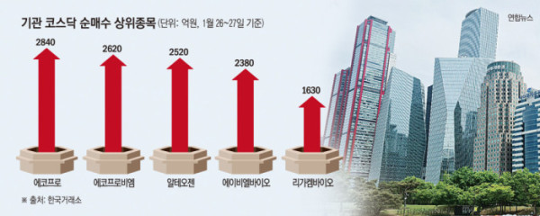 기관, 에코프로ㆍ알테오젠ㆍ에이비엘바이오 선택⋯시총 상위 종목 쓸어담아