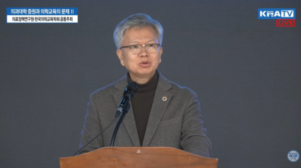 의사인력 수급추계위원회에 대한 불만도 드러냈다. 김 회장은 “우리의 예상보다 논의 과정, 검정 절차가 없다”며 “현재 보건의료정책심의위원회 4차 회의까지 진행됐고, 오늘 5차 회의가 진행되는데 어떠한 결론이 도출될지 예상되는 정도다. 이 사안은 숫자의 문제가 아니라 교육의 문제다. 의학교육 현장의 운영 현실을 하나하나 점검하지 않으면 같은 혼란이 반복될 수밖에 없다”고 강조했다.