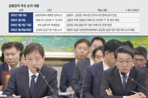 한 금융권 관계자는 “금감원이 공공기관으로 지정되면 정치·행정적 영향력에서 자유롭기 어려운 구조가 된다”며 “지배구조 이슈까지 결합될 경우 특정 금융사에 대한 표적성 감독·수사 논란이 반복될 수 있다는 점도 부담”이라고 말했다.