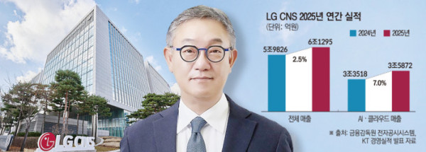 올해 실적과 관련해선 완만한 성장 기조가 예상된다. 송광륜 LG CNS 최고재무책임자(CFO)는 이날 컨퍼런스콜에서 "올해 매출은 전년 대비 미드 싱글 디짓(한 자릿수 중반) 수준의 성장을 전망하고 있다"며 "일부 계열사의 업황 부진으로 그룹 사업이 다소 위축될 수 있지만 AX 전환에 따른 IT 투자는 지속될 것으로 보고 있다"고 말했다.