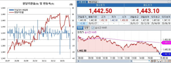 장중에는 1452.3원까지 치솟았다. 이날 1450.0원에 출발한 원·달러 환율은 장중 1444.5원까지 떨어지기도 했다. 장중 변동폭은 7.8원이었다.