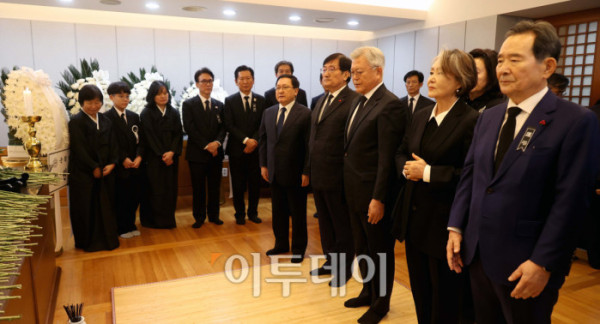 ▲정세균 전 국무총리가 27일 서울 종로구 서울대학교병원 장례식장에 마련된 이해찬 민주평화통일자문회의 수석부의장의 빈소를 조문하고 있다. 2026.1.27 사진공동취재단