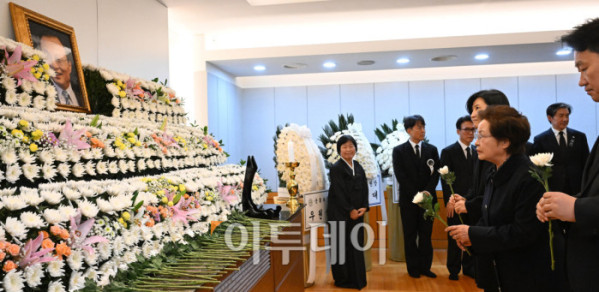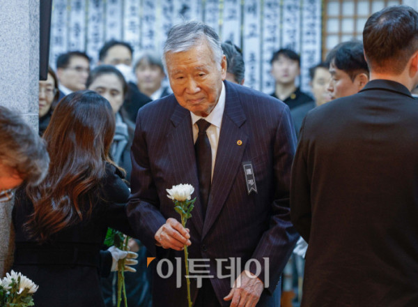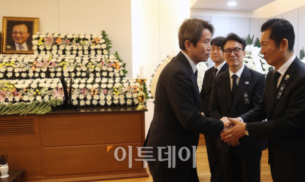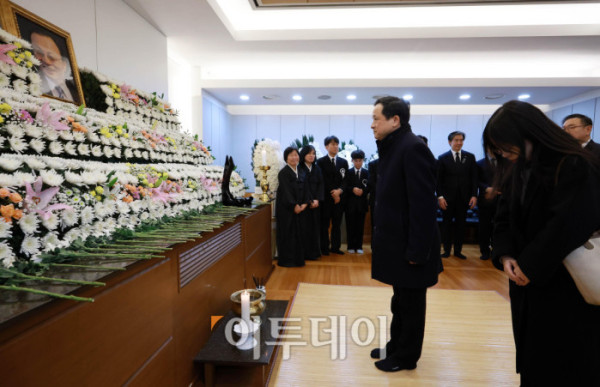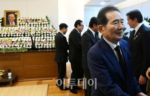▲27일 서울 종로구 서울대학교병원 장례식장에 이해찬 민주평화통일자문회의 수석부의장의 빈소가 마련된 가운데 이중근 부영그룹 회장이 조문을 하고 있다. 이 전 총리는 베트남 출장 중 지난 23일 심근경색으로 쓰러져 병원으로 긴급 이송된 지 이틀만에 숨을 거뒀다. 2026.01.27. 사진공동취재단