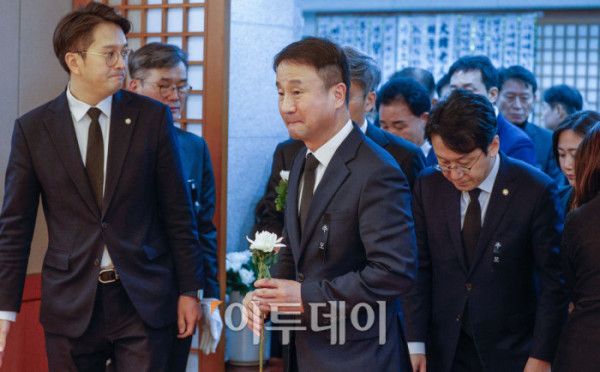 ▲27일 서울 종로구 서울대학교병원 장례식장에 이해찬 민주평화통일자문회의 수석부의장의 빈소가 마련된 가운데 더불어민주당 한병도 원내대표(왼쪽 두번째)가 조문을 하고 있다. 이 전 총리는 베트남 출장 중 지난 23일 심근경색으로 쓰러져 병원으로 긴급 이송된 지 이틀만에 숨을 거뒀다. 2026.01.27. 사진공동취재단