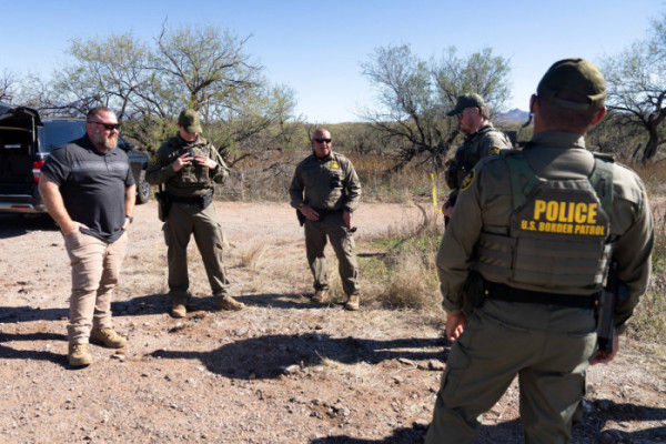 ▲미 애리조나 국경 인근 총격 사건 발생 현장 근처에 모여 있는 국경순찰대 모습 (로이터/연합뉴스)
