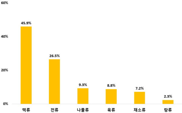 차례 음식 품목 가운데서는 조리 부담이 큰 떡류와 전류에서 반조리·완제품 구매가 집중됐다. 반조리·완제품 선택 시 고려 요소로는 맛(54.8%), 원산지(20.6%), 가격(16.5%) 순이었으며, 차례용 과일 역시 전통적인 제수 과일 비중은 줄고 새로운 국산 과일이나 일부 수입 과일 구매 비중이 소폭 늘었다.