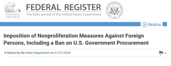 크리스토퍼 요 국무부 비확산·군비통제 차관보는 성명에서 “이번 조치는 국무장관이 추후 달리 결정하는 경우를 제외하고는 발효일로부터 2년간 유지된다”고 설명했다.