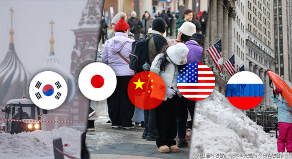 같은 한기라도 어디에 부딪히느냐에 따라 결과는 달라지는데요. 한국에선 장기 한파로, 일본에선 폭설로, 미국에선 눈폭풍 뒤 혹한과 정전으로, 러시아와 중국에선 수미터 폭설·극저온으로 각기 다른 얼굴을 하고 나타났습니다.