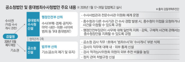 정부는 이달 내 국회에 공소청 법안과 함께 중대범죄수사청 법안을 제출할 계획이다. 큰 틀은 지난달 26일로 입법 예고가 마무리돼 2월 국회통과가 목표다.