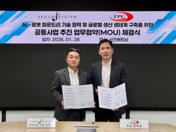 TPC메카트로닉스(TPC)는 28일 글로벌 제조플랫폼 기업인 서진시스템의 서진오토와 로봇 파운드리 및 생산 제조 물류 자동화를 포함한 인공지능(AI) 자율제조 분야에서 사업협력을 위한 전략적 업무협약(MOU)을 체결했다고 29일 밝혔다.