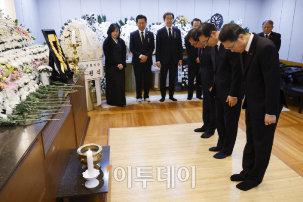 ▲주병기 공정거래위원장이 29일 서울 종로구 서울대학교병원 장례식장에 마련된 고 이해찬 전 국무총리의 빈소에서 조문을 하고 있다. 조현호 기자 hyunho@