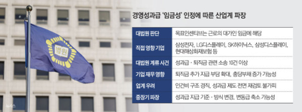 재계 관계자 “사법부 판단으로 인해서 이제 경영 성과급을 갖춘 대기업 위주로 소송 리스크가 커질 것으로 보인다”며 “기존의 경영 성과급이 없었던 중견, 중소기업과 대기업 간의 임금 격차 심화로 노동시장 이중 구조가 좀 더 심각해지지 않을까 우려가 많이 된다”고 말했다.