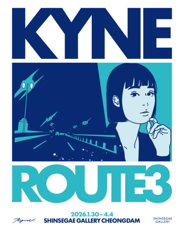 이번 전시는 작가의 영감의 원천인 후쿠오카의 국도 3호선 ‘ROUTE 3’을 제목으로 삼아, 키네의 시그니처 도상인 여성 인물과 작가가 도시를 통과하며 포착해 온 장면을 함께 제시한다.