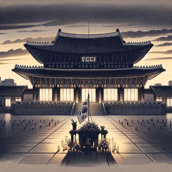 ▲청사 앞에 고인을 추모하는 분향소가 마련된 모습을 형상화한 이미지. (김재학 기자·오픈AI 달리)