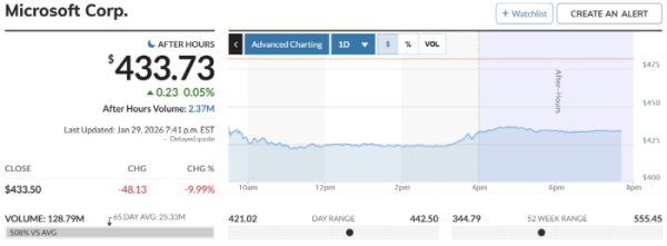 배런스에 따르면 MS 주가는 전장보다 9.99% 밀린 433.50달러에 장을 마감했다. 동사의 회계연도 2분기(지난해 10∼12월) 매출과 주당순이익이 월가 전망치를 상회했음에도 투자자들은 클라우드 부문에 대해 우려했다. 애저 클라우드 컴퓨팅 플랫폼 매출이 전년 동기 대비 39% 증가했는데, 이는 1분기 성장률 40%에서 소폭 둔화한 수치다.