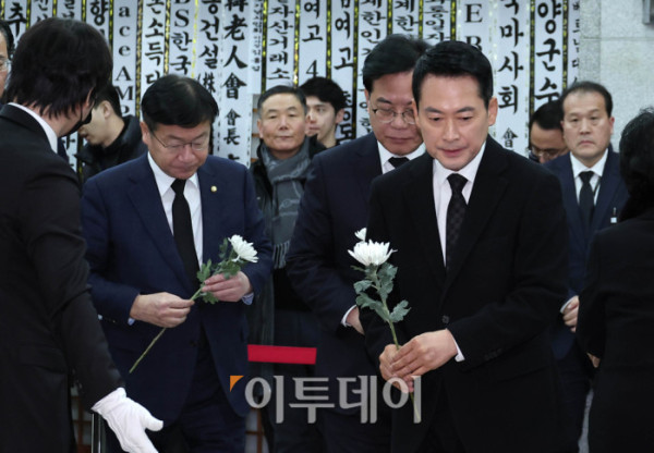 ▲국민의힘 장동혁 대표와 송언석 원내대표 등 지도부가 30일 오전 서울 종로구 서울대학교병원 장례식장에 마련된 故 이해찬 전 국무총리의 빈소를 찾아 조문하고 있다. 2026.01.30. 사진공동취재단