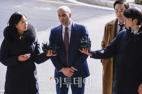▲헤럴드 로저스 쿠팡 한국 법인 임시대표가 30일 서울 종로구 서울경찰청 쿠팡 수사 종합 태스크포스(TF)에서 진행되는 소환조사에 피의자 신분으로 출석하며 입장을 밝히고 있다. 로저스 대표는 '셀프 조사' 의혹과 관련해 공무집행방해·업무방해 등 혐의로 고발된 상태다. 조현호 기자 hyunho@