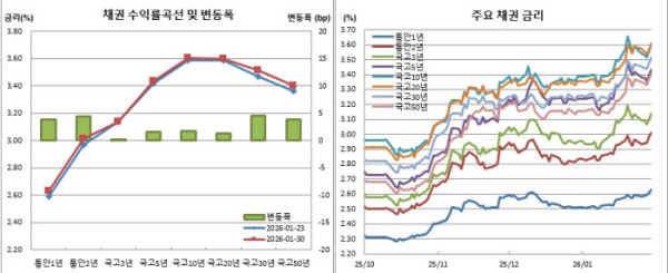 이는 월말 단기 자금 수요에 따른 부담감이 작용한데다, 주식시장 랠리, 2월 3일 예정된 4조7000억원(지표물 및 선매출 각각 2조3500억원) 규모 국고채 30년물 입찰 부담 등이 작용했기 때문으로 풀이된다. 이창용 한국은행 총재가 28일 홍콩에서 열린 골드만삭스 주최 ‘글로벌 매크로 컨퍼런스’에서 “금리는 K자형 양극화 심화 문제를 해결하는 데 적절한 수단이 아니라고 생각한다”, “(올해 1.8% 성장률 전망과 관련해) 상방 리스크가 있다”고 언급한 것도 영향을 미쳤다.