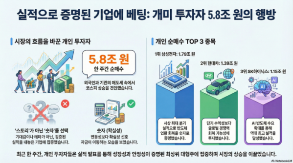 [주간수급리포트] 6조 쏟아부은 개미, 실적 ‘증명된’ 삼전·현대차 대형주에 몰렸다