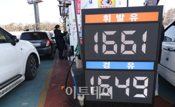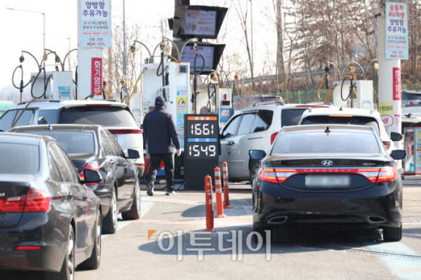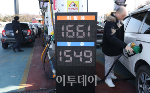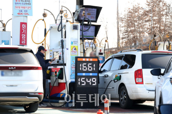 ▲국내 주유소 휘발유와 경유 가격이 8주 연속 하락세를 이어가고 있다. 한국석유공사 유가정보시스템 오피넷에 따르면 1월 넷째 주 전국 주유소의 휘발유 평균 판매가격은 전주보다 5.6원 내린 리터(ℓ)당 1690.6원, 경유 평균 판매가격은 6.2원 하락한 리터(ℓ)당 1583.8원으로 집계됐다. 1일 서울 서초구 만남의광장 주유소에서 운전자가 주유를 하고 있다. 고이란 기자 photoeran@