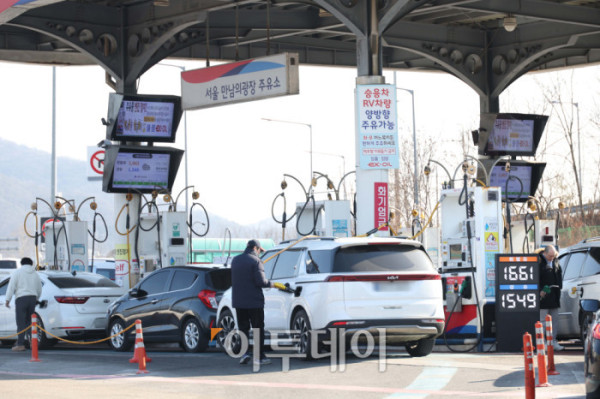 국내 주유소 휘발유와 경유 가격이 8주 연속 하락세를 이어가고 있다. 한국석유공사 유가정보시스템 오피넷에 따르면 1월 넷째 주 전국 주유소의 휘발유 평균 판매가격은 전주보다 5.6원 내린 리터(ℓ)당 1690.6원, 경유 평균 판매가격은 6.2원 하락한 리터(ℓ)당 1583.8원으로 집계됐다. 1일 서울 서초구 만남의광장 주유소에서 운전자가 주유를 하고 있다. 고이란 기자 photoeran@