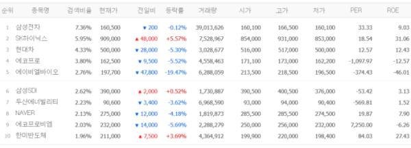2일 금융투자업계에 따르면 이날 장 시작 전 네이버페이증권 검색 상위 종목은 삼성전자, SK하이닉스, 현대차, 에코프로, 에이비엘바이오 등이다.