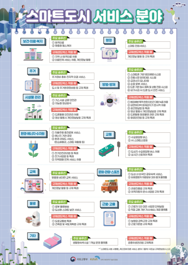 국토교통부가 스마트도시 기술·서비스의 규제 완화와 현장 실증을 지원하기 위한 규제샌드박스 실증사업 공모에 나선다.